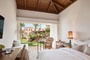 Candy colored bungalows with bamboo furniture in a tasteful modern style, surrounded by lush Cretan gardens that blend harmoniously with the village-like hotel environment.