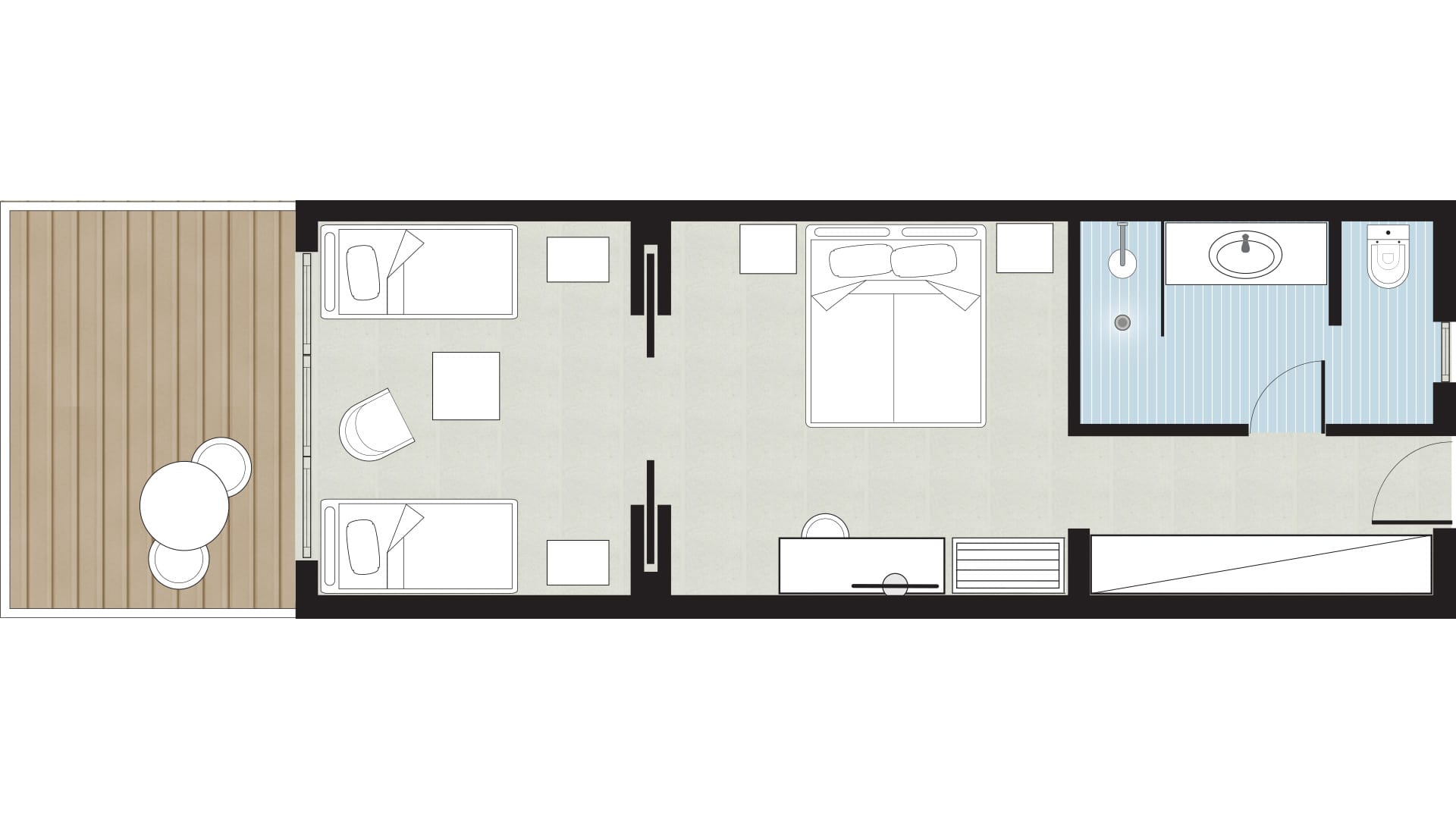 ROOM : 35m² / LAYOUT: Separate Rooms with slidding door /LOCATION:Main Building, Garden Area, Ground floor/1st/2nd floor/ VIEW: Side Sea / SLEEPS : 2 Adults + 2 Children